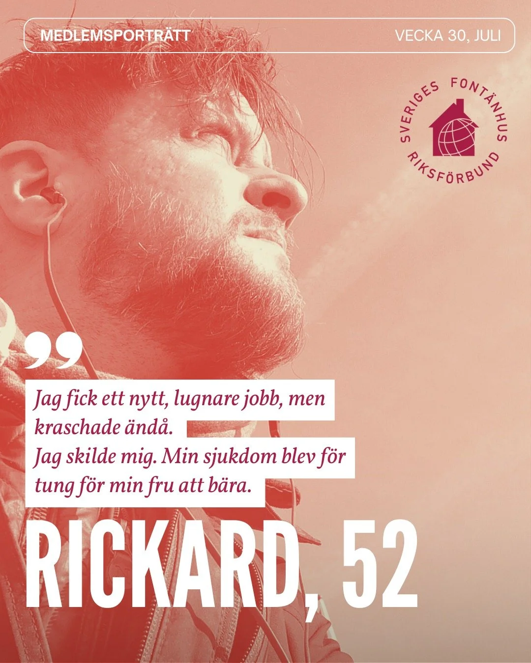 Rickard var i 30-årsåldern när hans tillvaro rasade och han drabbades av utmattningsdepression. Han fick så småningom diagnosen bipolär sjukdom, och har sedan dess kämpat med att hantera de extrema toppar och dalar som kommer med sjukdomen. Här är hans berättelse.