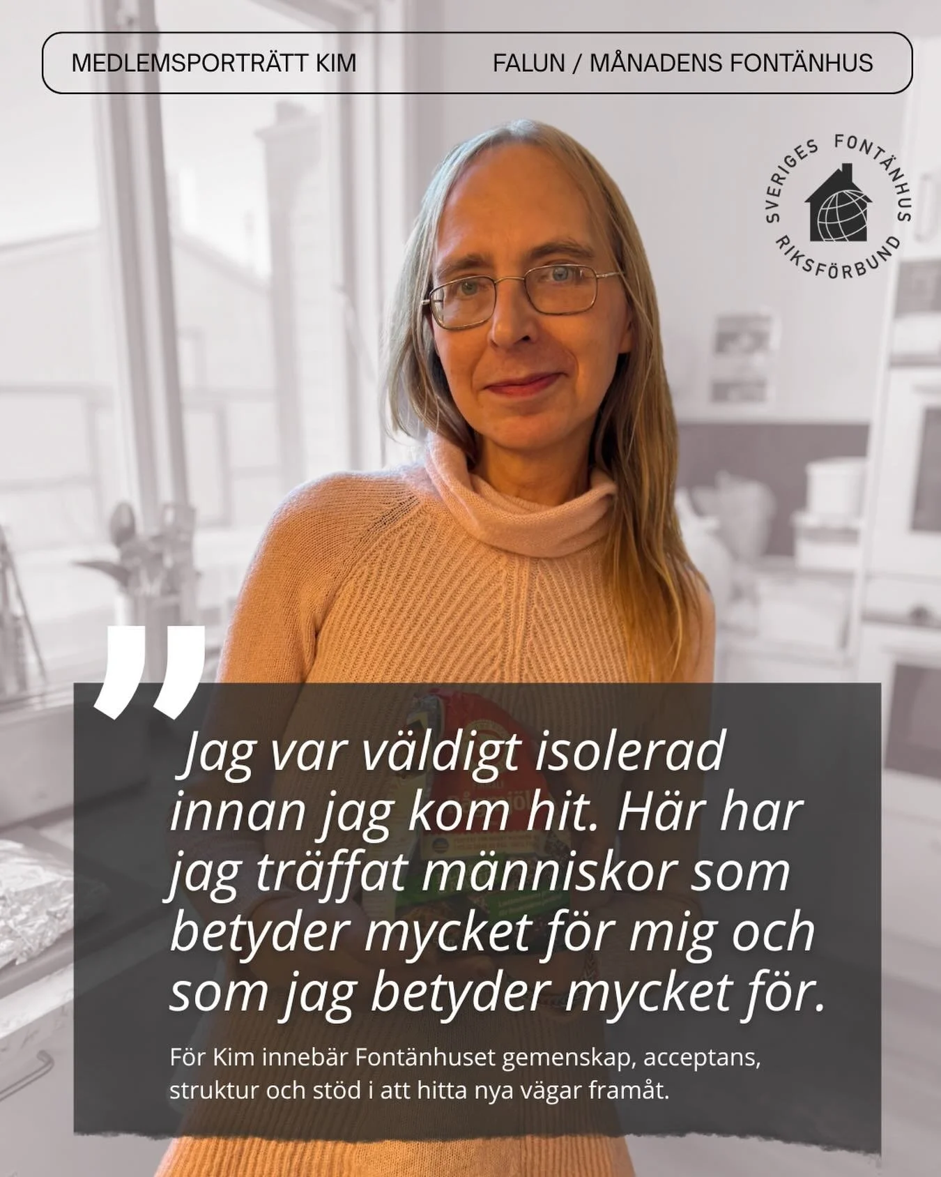 När Kim första dagen på Fontänhuset möttes av en liten men tydlig signal om acceptans väcktes något viktigt. Kort därefter blev hon medlem – och påbörjade en stillsam väg tillbaka till gemenskap, struktur och framtidstro.