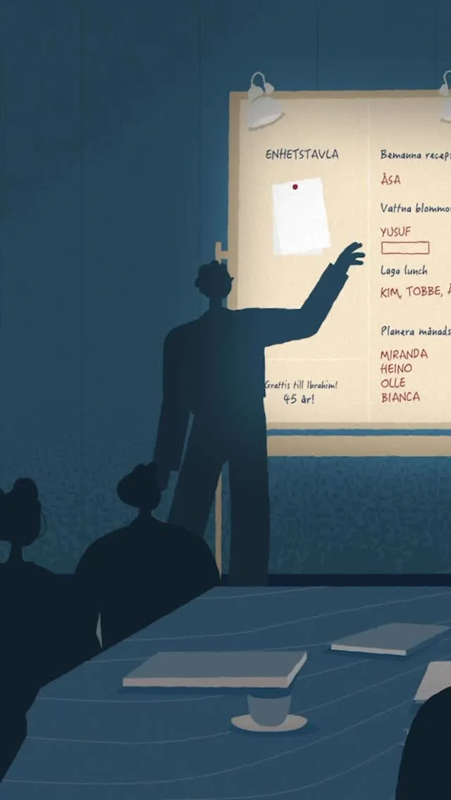 Dagen på Fontänhuset liknar en vanlig arbetsdag, där medlemmar och handledare arbetar tillsammans.